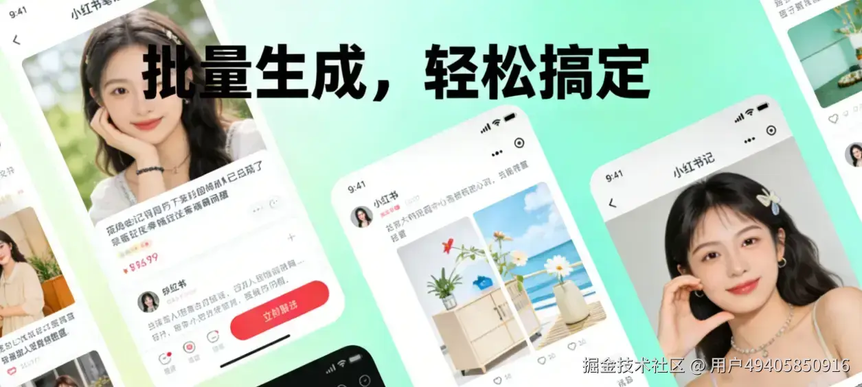 ・全流程自动化:【文案生成】基于旅游目的地信息自动撰写攻略、体验分享;【图片生成】对接 Stable Diffusion/MidJourney,生成高清打卡照、路线图;【排版适配】自动匹配小红书爆款格式(emoji分段、标签优化)