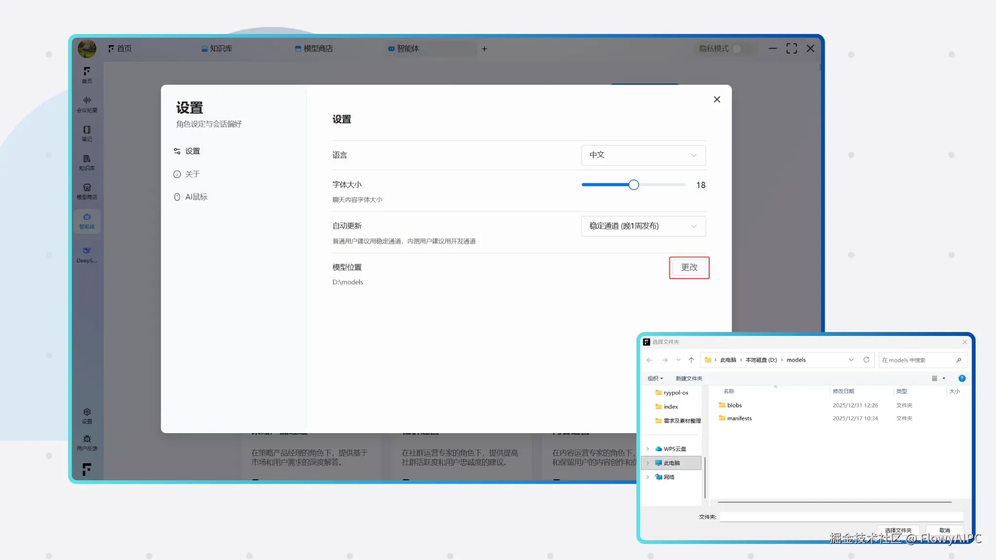针对本地模型体积大、C盘空间紧张的问题,v4.0.3 新增: