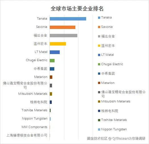 根据QYResearch头部企业研究中心调研,全球范围内电触点材料生产商主要包括Tanaka、Saxonia、福达合金、温州宏丰、LT Metal等。2024年,全球前五大厂商占有大约40.0%的市场份额。