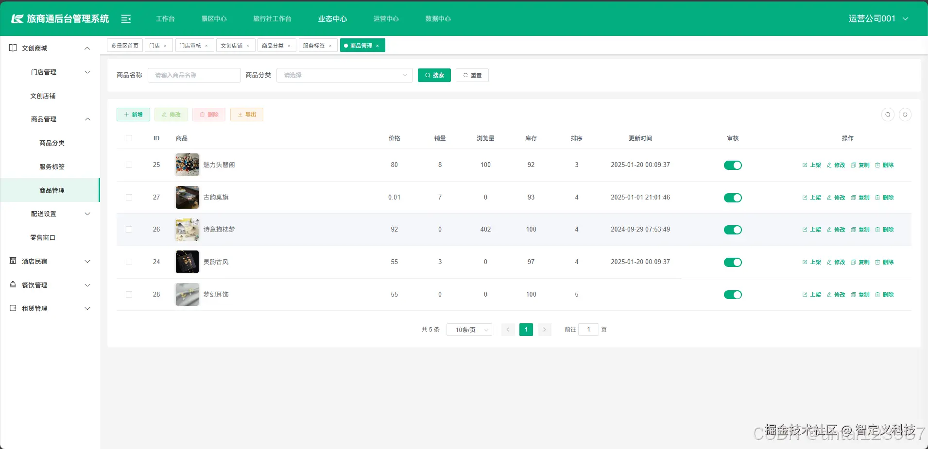 #智慧文旅#文创商城管理系统满足景区、运营公司或者全域文旅对文创店铺、商品的全流程管理需求,提供文创商品的线上线下产品销售、会员管理、促销管理等服务。包括文创店铺的基本信息管理、文创商品的分类管理、标签管理、上下架管理、库存案例、配送管理等功能。