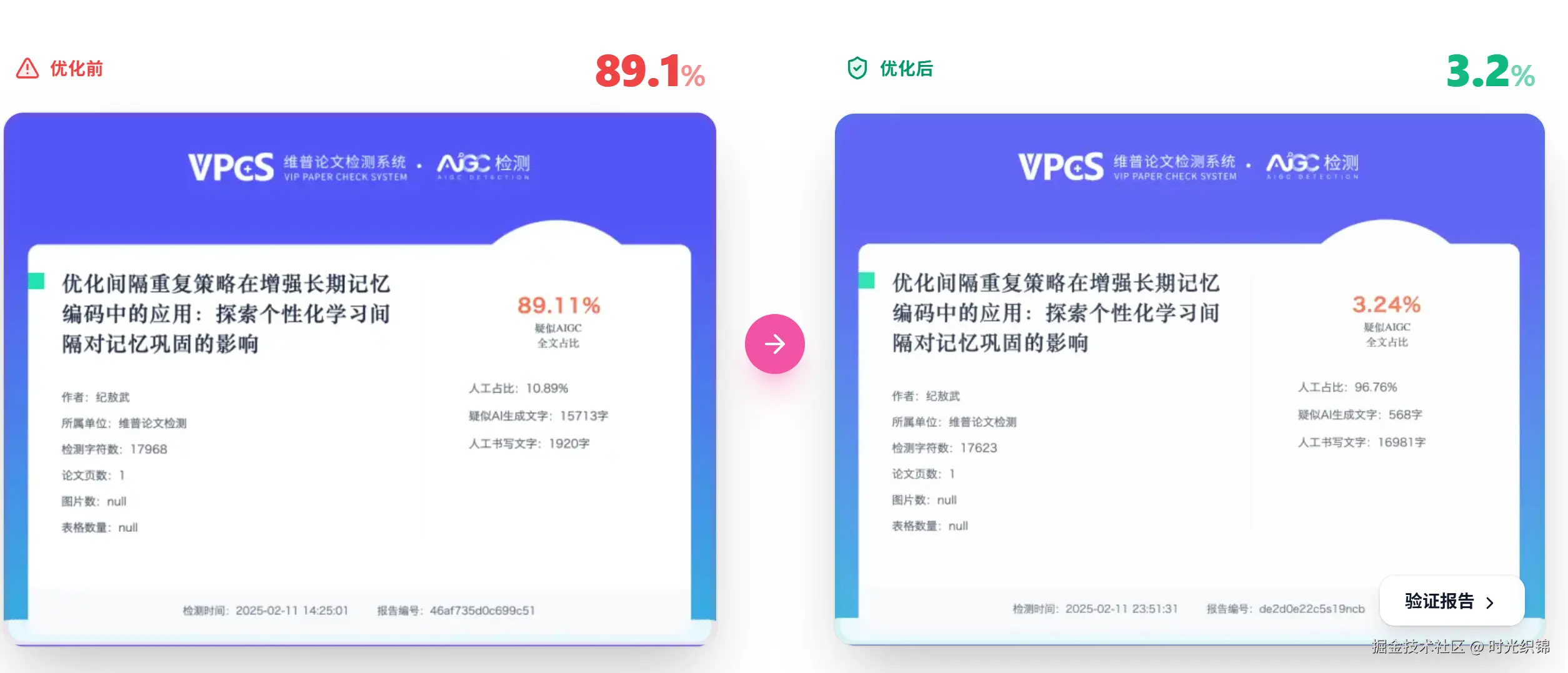 - 降AI率数值与实测效果