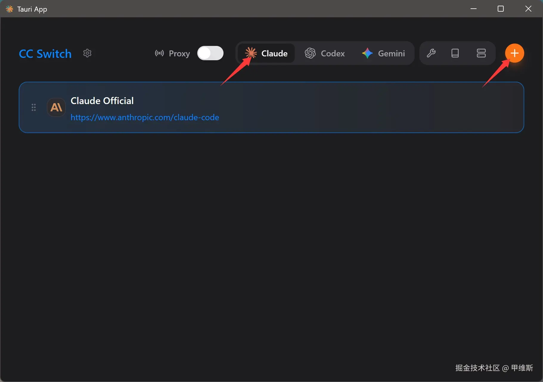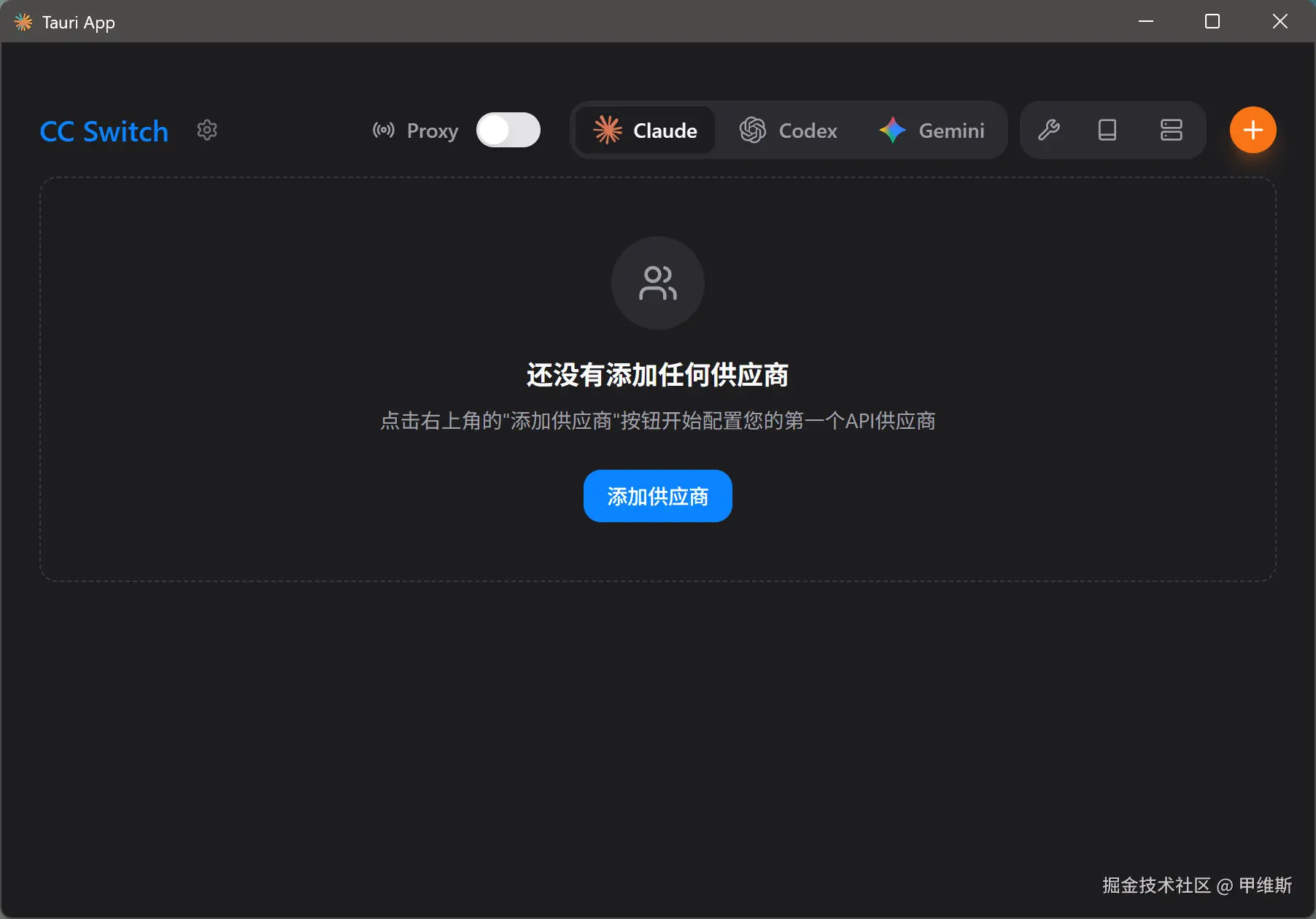 默认 Claude 下面没有供应商,需要先添加一个官方供应商。
