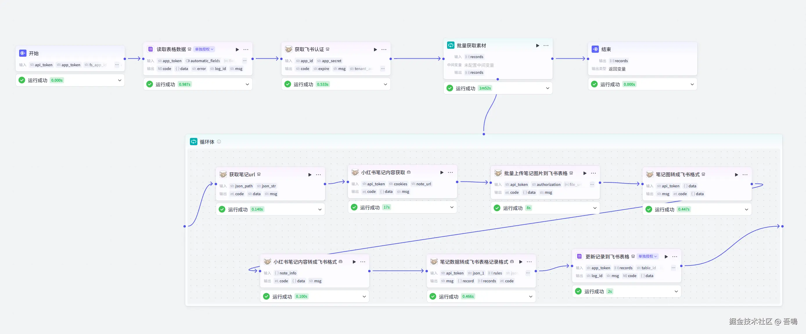 对于这种流程较重的工作流,主要的难点还是在数据的处理以及飞书多维表格的权限配置上,不过权限的配置只需要配置一次就可以一直使用,无需重复配置,关于多维表格权限的配置,可以看看我文章开头说的那一篇文章,那篇文章已经讲的比较清楚了。