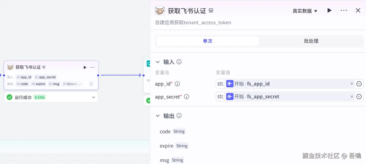 这几个参数的获取方式可以查看我之前发的文章——《效率翻倍!自媒体人必备神器:用扣子(Coze)搭建专属素材库,告别灵感枯竭》,这里不再详细展开。