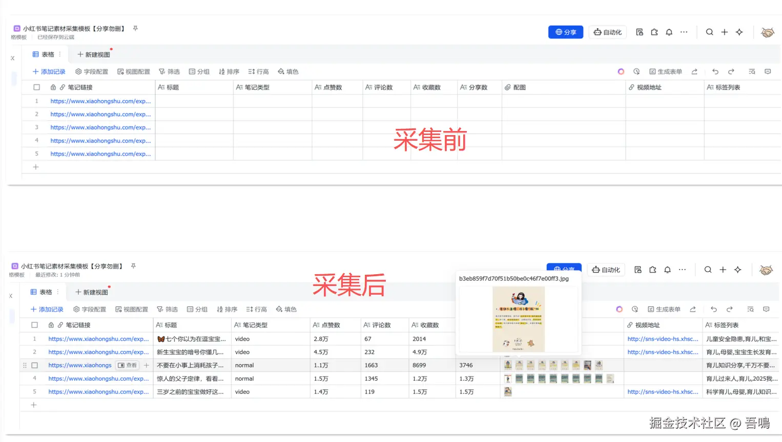 素材库仅仅是公众号那还远远不够,所以本文将继续分享如何采集小红书的笔记内容到飞书表格,以便在你看到好的笔记的时候可以方便的把它收集到素材库中,以便后续创作可以从素材库中查找灵感。