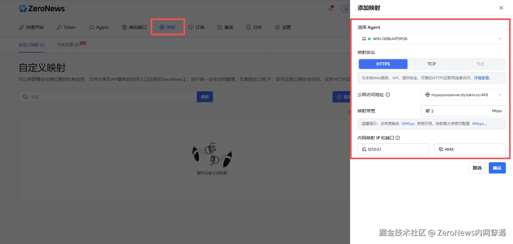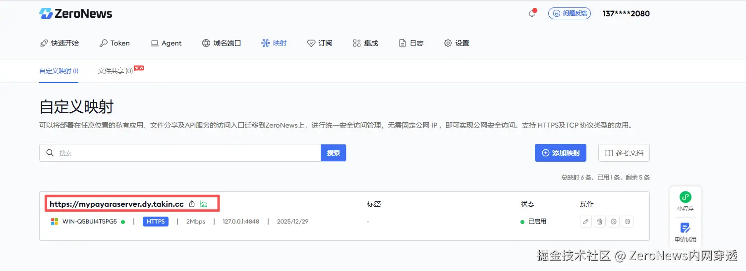 4、 按照上述步骤创建完成之后,我们就可以得到一条可公网访问的映射域名