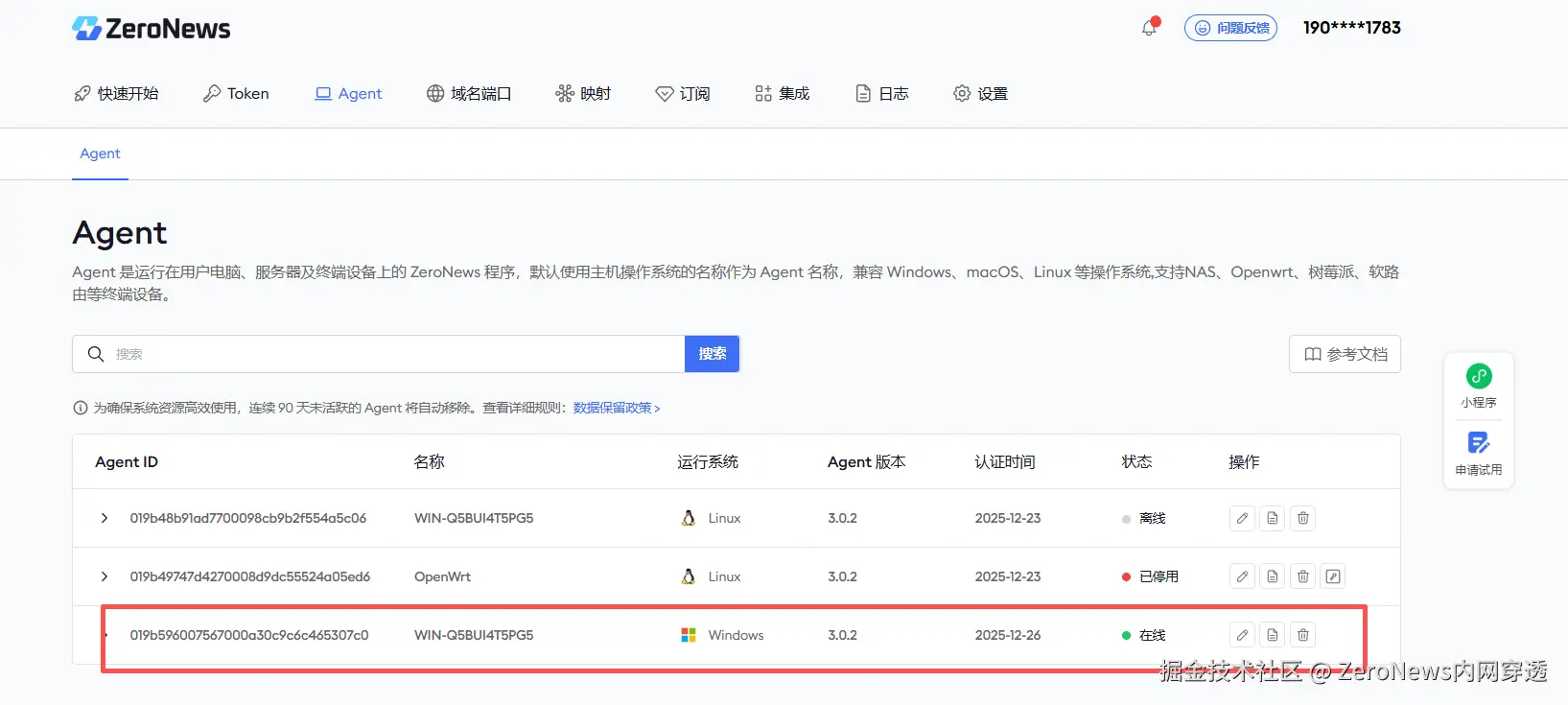 首先,打开 ZeroNews 网站,然后选择您的系统(小编用的是用Win10,选择Windows即可),并按照对应的步骤和命令安装运行 Agent 服务。