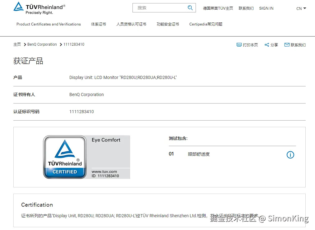 而现在的明基 R280U显示屏通过了5项莱茵认证: