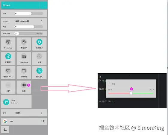 而明基 RD280U针对色弱可以调节红绿色的亮度。特意让同事体验了一把,感觉极度舒适。