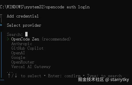 opencode auth login并填写 key 完成登录。 - Windows 用户常见问题:在选择登录方式后,因 TLS 证书校验报错,导致登录失败。