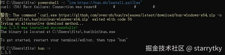 1. 安装 Bun(Windows PowerShell 管理员权限)