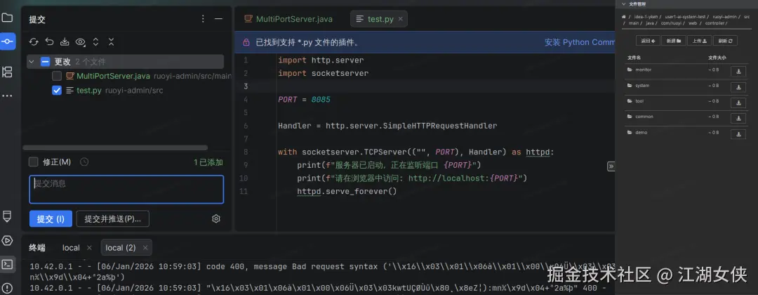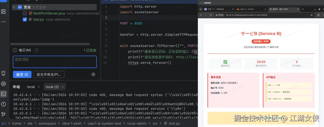 内置网页浏览器: 前端开发专属福利,写完代码直接在 IDE 内预览,支持实时刷新。点击页面元素即可快速定位到对应的代码行,调试界面效率翻倍。