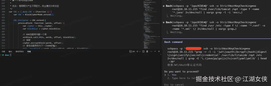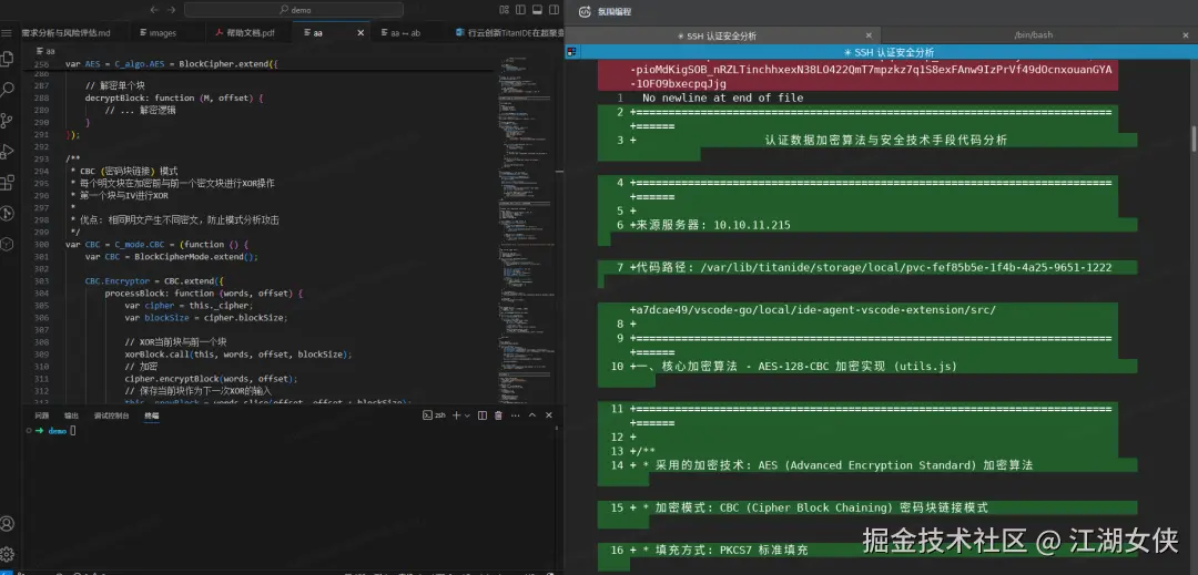 完成核心逻辑开发后,需要快速生成批量数据查询接口(CRUD**)。无需关闭项目、重新配置环境,只需在同一面板中继续下达指令,Claude Code 凭借高效的代码生成能力,秒级输出标准化接口代码,同时氛围编程的代码审查面板会自动弹出 diff 视图,绿色标注新增代码、红色标记删除内容、黄色提示修改部分,所有改动一目了然,无需手动执行繁琐的对比操作。