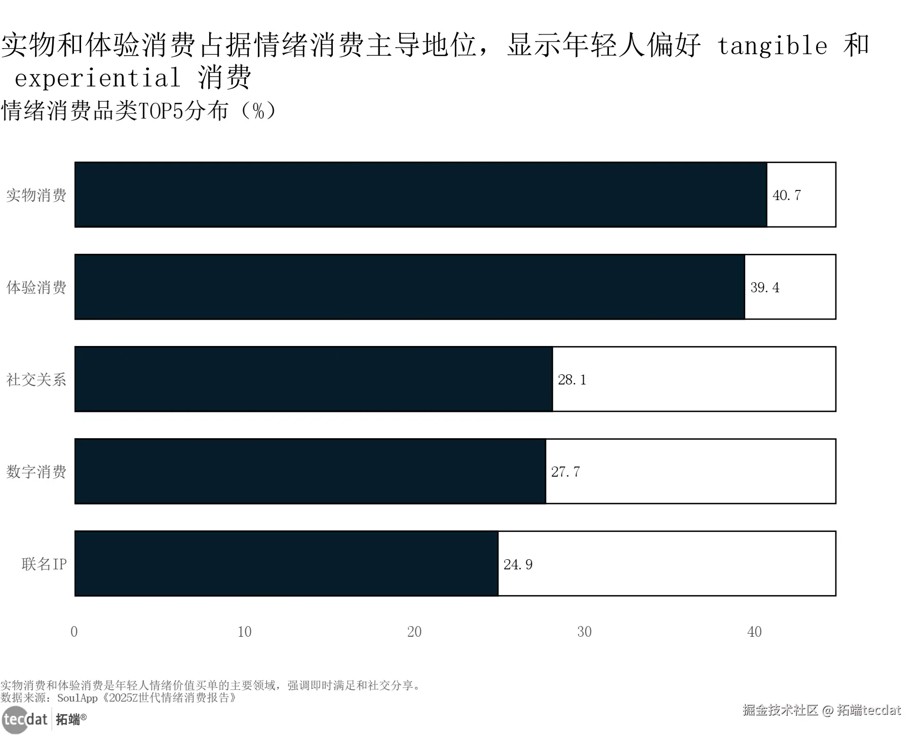 消费品类分布上,实物消费(40.7%)和体验消费(39.4%)占据主导地位,社交关系、数字消费、联名IP紧随其后,反映出年轻人既注重即时满足的实物体验,也追求沉浸式的情感消费场景。