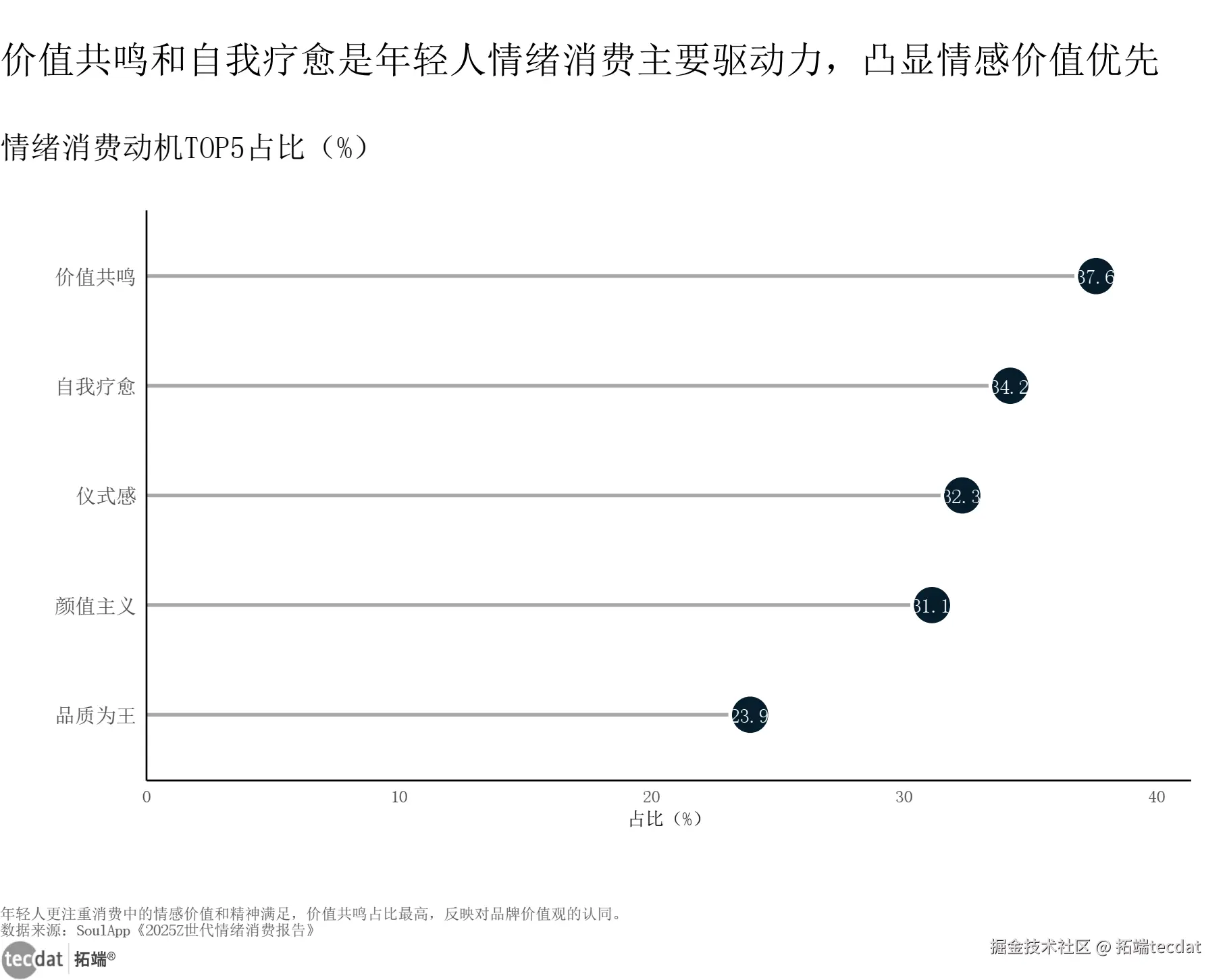 从消费动机来看,价值共鸣和自我疗愈是核心驱动力,分别占比37.6%和34.2%,远超仪式感、颜值主义等其他动机,凸显年轻人在消费中对情感认同和精神慰藉的极致追求。