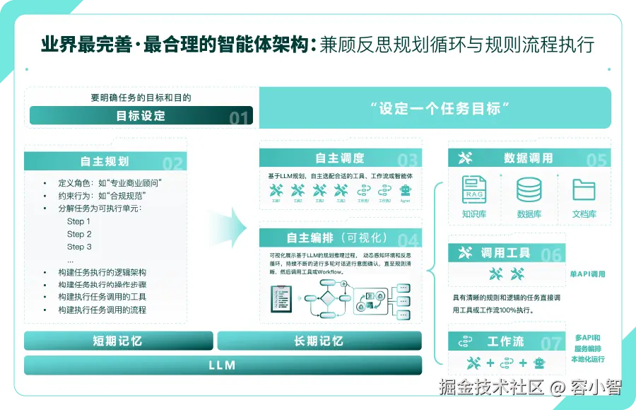 最后是记忆增强与知识治理能力。企业级Agent的“智能”并非来源于短期对话,而是来源于长期可积累的业务知识。通过短期记忆维持上下文一致性,通过长期记忆与知识库沉淀业务经验,并结合向量检索与重排序机制,Agent才能在不同时间、不同任务中保持判断一致性与经验复用能力。