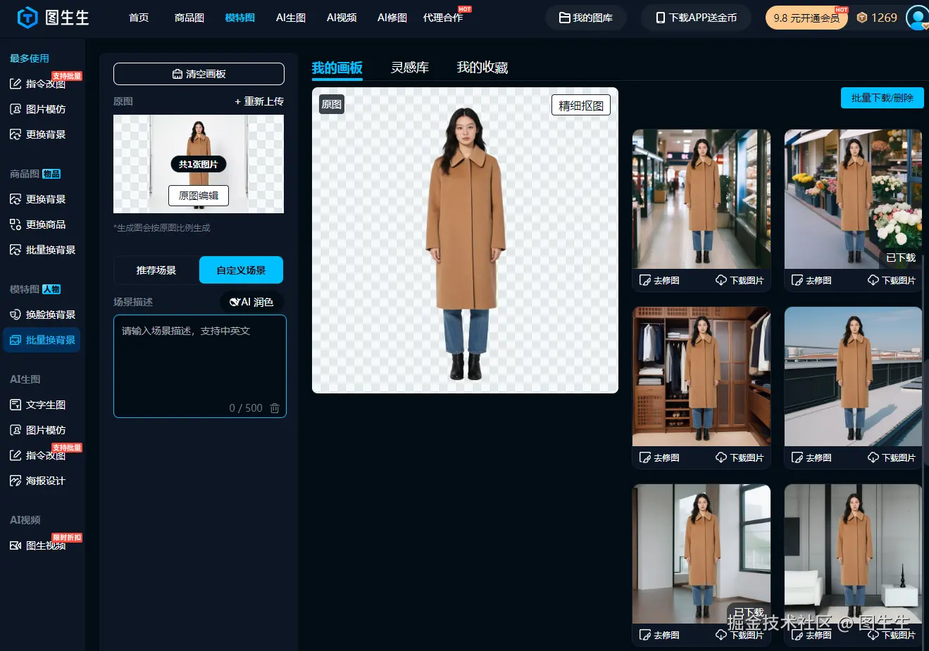 直到用了AI模特换背景功能才解放双手!以女装模特原图为例,不用额外拍图,一键切换场景,轻松搞定电商带货高质量配图。
