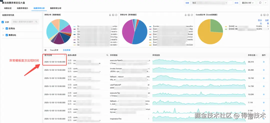 日志模板聚类维度支持:应用名、集群名、异常名、code码、异常日志模版等。