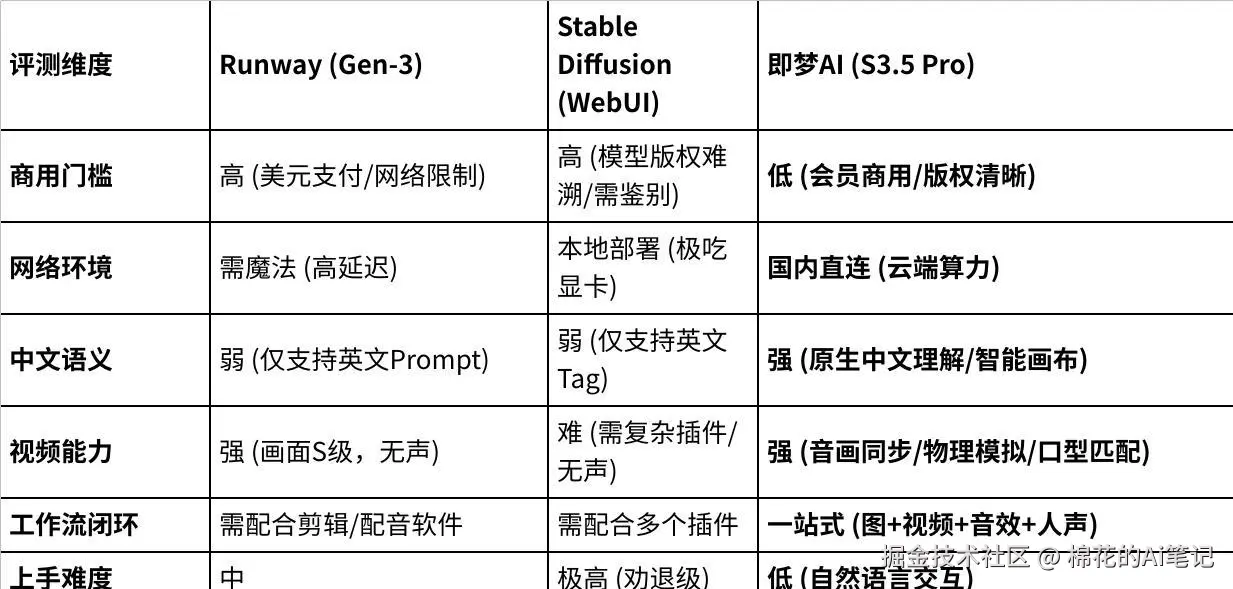 答案已经非常明显。如果你追求的是不计成本的极致画面探索,海外的 Runway 依然是很好的参考系;如果你是懂代码的技术流,Stable Diffusion 能给你无限的控制权。