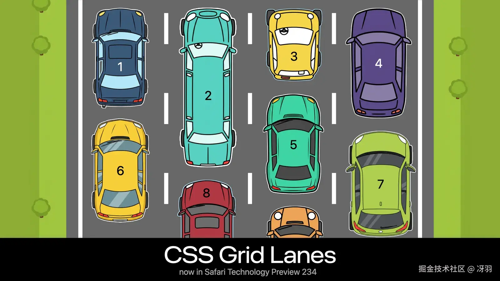 CSS Grid Lanes 就是这个原理——你先定义好有几条“车道”(列),网页内容会自动填充到最短的那一列,就像车辆自动选择最不拥堵的车道一样。