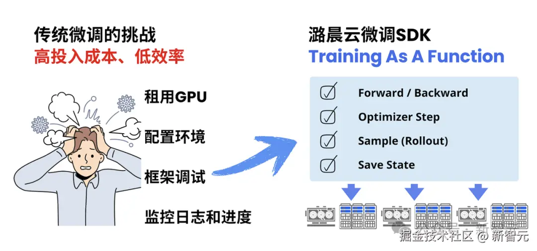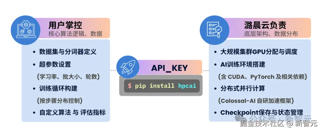 「潞晨云微调」 「SDK」 「的核心思路可以概括为:「「算法」」工程师定义算法逻辑,潞晨云搞定 Infra。」