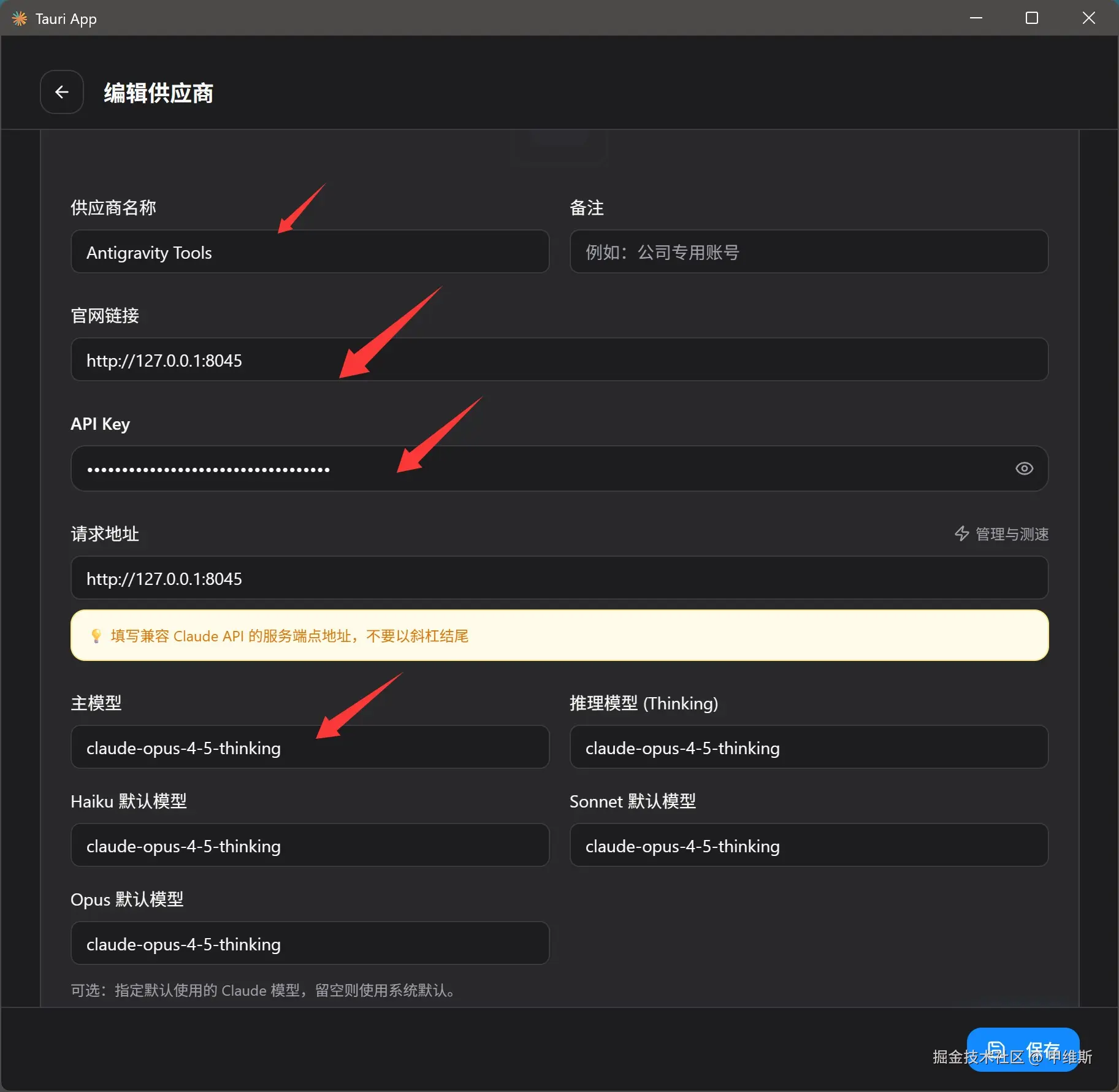 打开CC-Switch,添加一个 Antigravity Tools 的供应商。