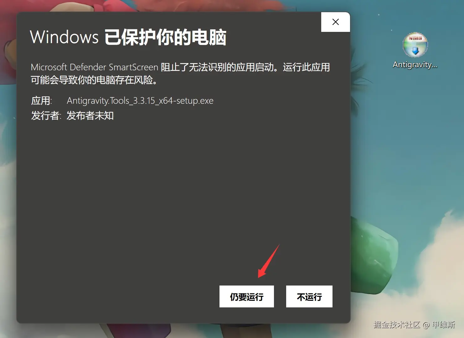 由于是未经认证的新软件,所以会有这个提示。不用担心,点击仍然运行继续安装。