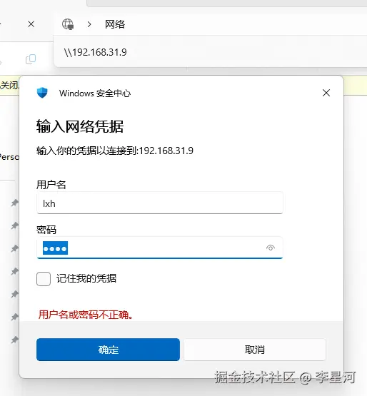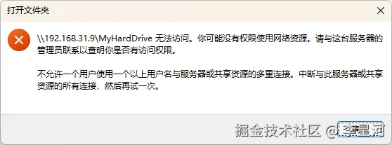 如果你改了密码,或者前面配置反复折腾了很多次,Windows 可能会傻傻地记住旧密码或权限设置,导致一直报错且不弹窗。 解决方法: