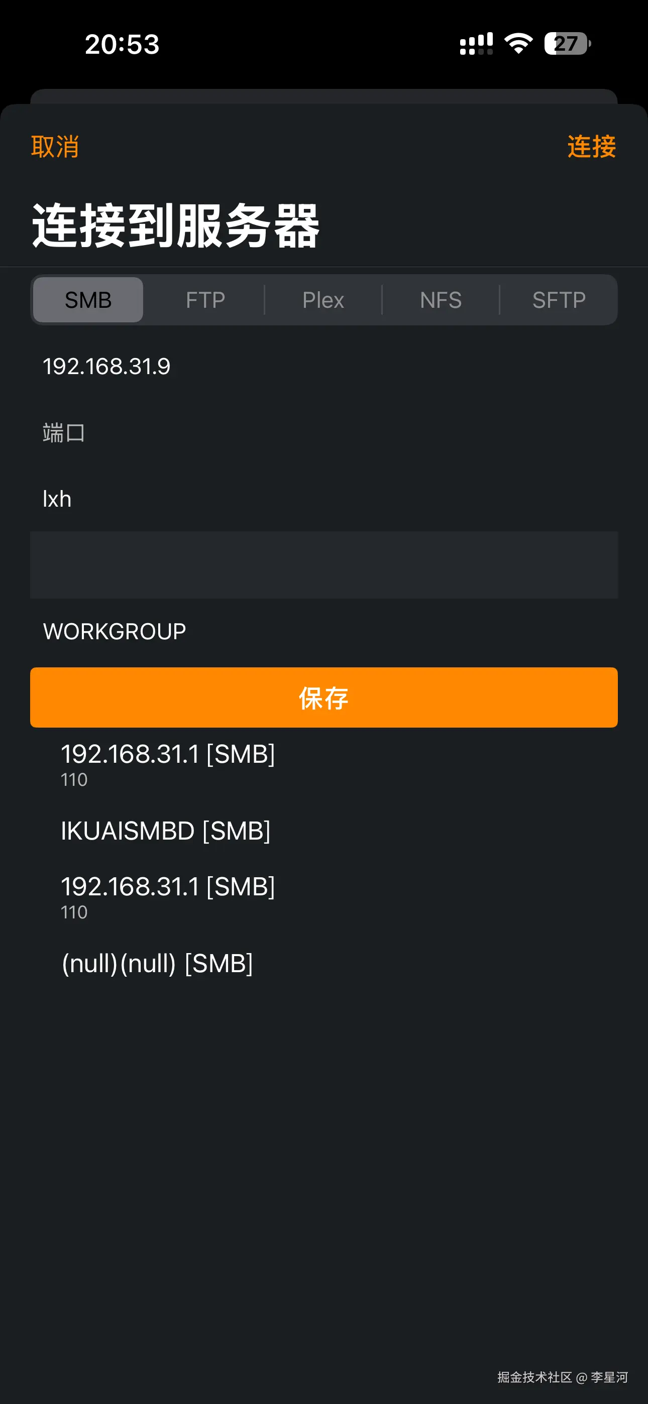 sudo smbpasswd -a lxh输入两次密码,这就是你手机连接时要填的密码!