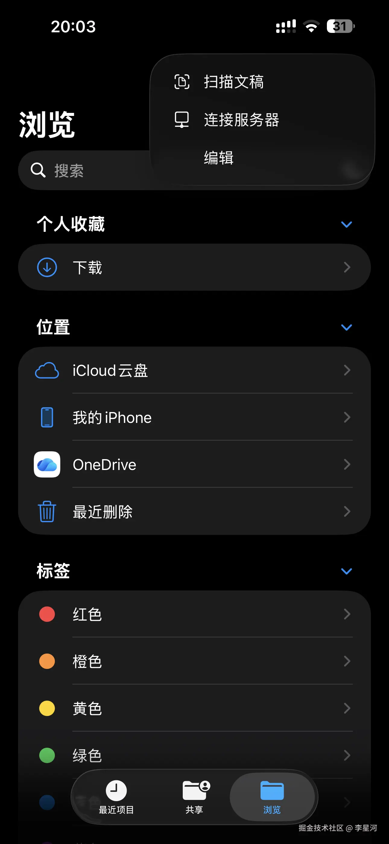 - 打开 iPhone 的 “文件” App,点击右上角三个点 -> “连接服务器” 。