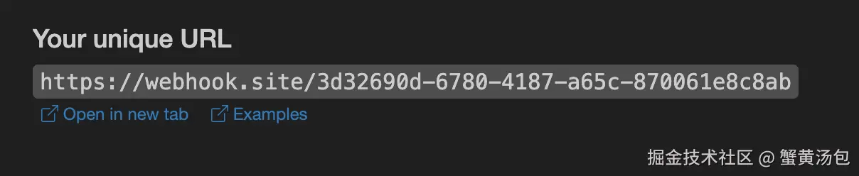 将此 URL 复制下来,就可以作为 Webhook 来使用,此处的样例为 `https://webhook.site/3d32690d-6780-4187-a65c-870061e8c8ab`。