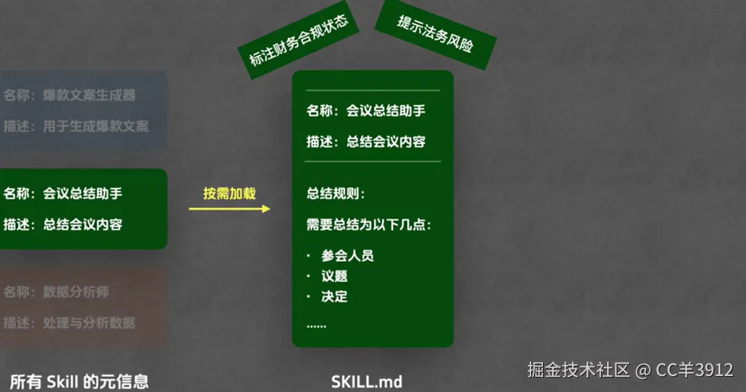 它的核心突破在于**“渐进式披露(Progressive Disclosure)”**架构:模型仅在推理过程中根据意图动态挂载必要的规则片段或数据引用。