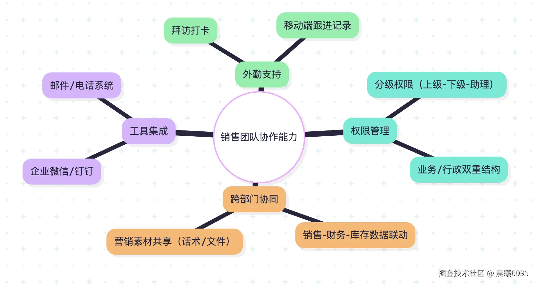 | 销售团队协作 | 权限管理机制、跨部门数据共享、工具生态集成、外勤/远程协作支持 |