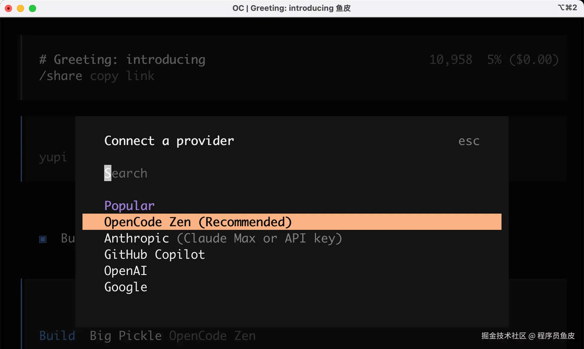 相比于 Claude Code,OpenCode 真是把命令行的交互体验拉满了,甚至我觉得它是一个伪装成命令行的桌面应用。