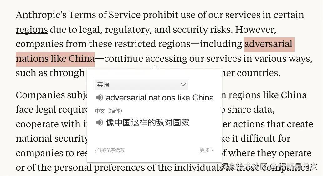 甚至 Anthropic 还特别点名了中国,把咱们称为 敌对国家!