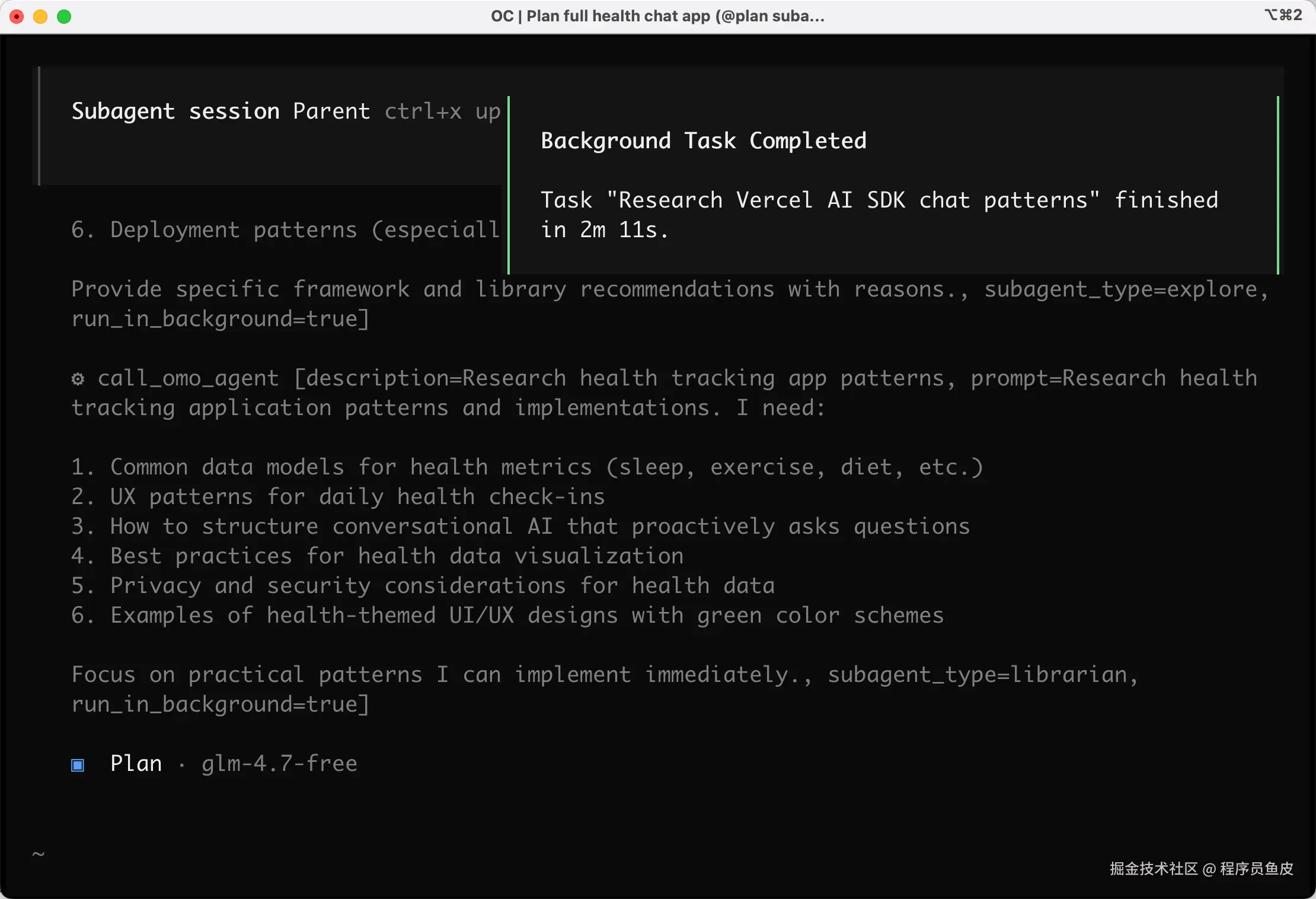 而且当后台任务完成时,会有一个提示。可以看到 “研究 Vercel AI SDK 对话模式” 的任务已经完成。