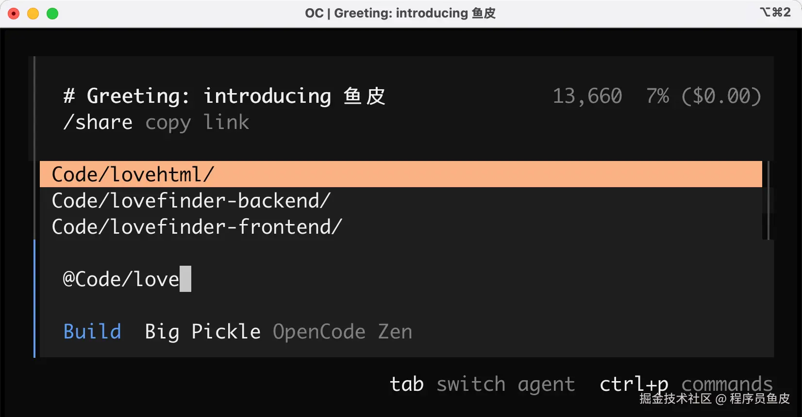 恭喜,到这里你已经掌握了 OpenCode 的 70% 了。