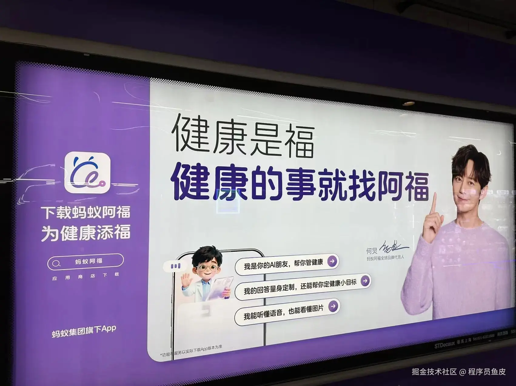 最近蚂蚁集团的 蚂蚁阿福 AI 健康助手火了,地铁口、公司楼下的电视广告中随处可见何炅老师的身影。