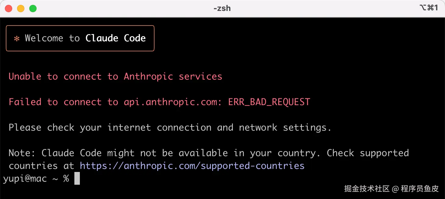 首先,如果你想要使用 Claude Code,就必须要有特殊的网络 + 官方账号,否则就会看到一片红。