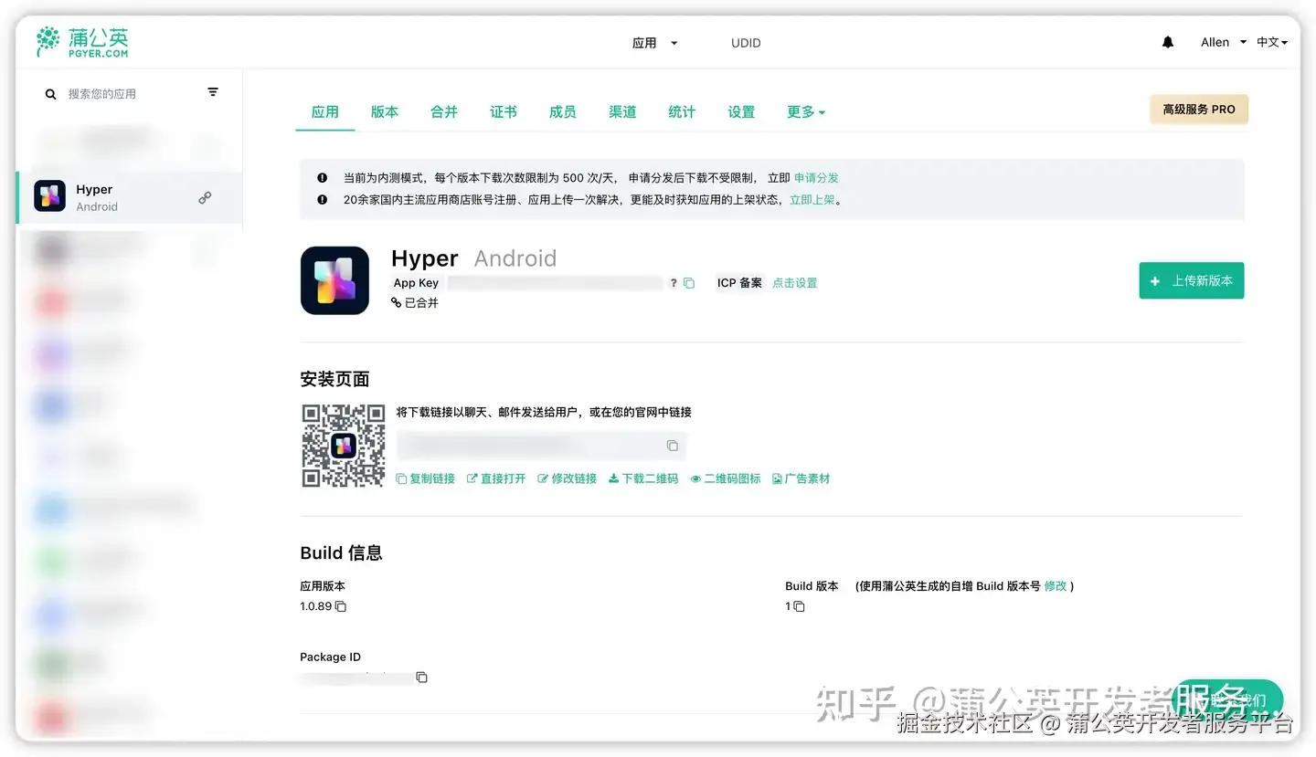 作为平台的核心功能,蒲公英的内测分发真正做到了“上传即能用”,彻底简化了跨平台分发的复杂度: