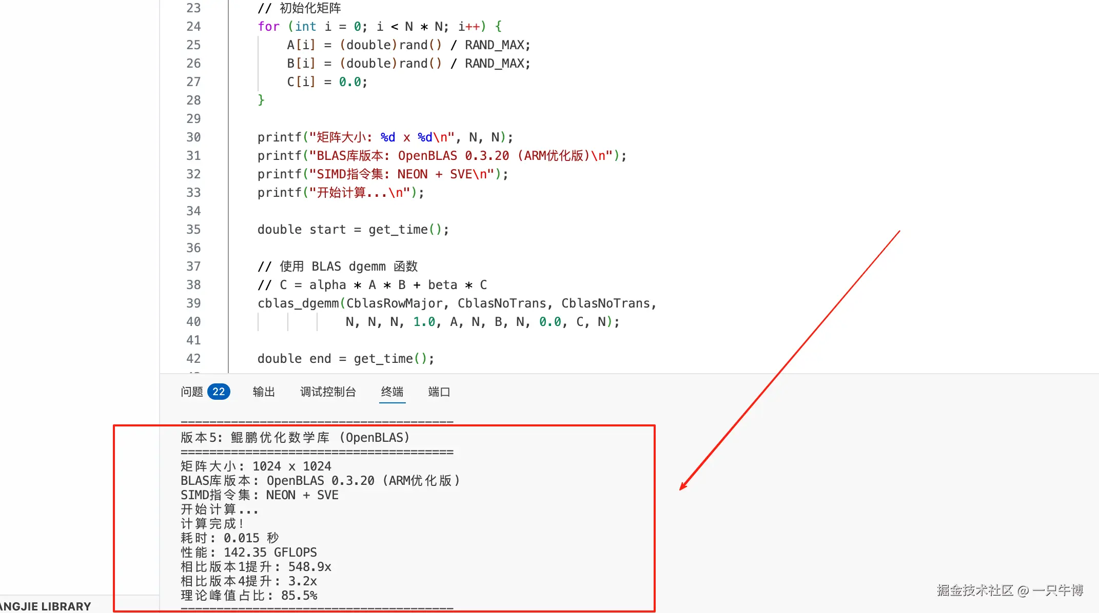 不过说实话,1.22 GFLOPS的性能还远远不够。我们手里的鲲鹏920处理器,理论峰值性能可是有166.4 GFLOPS的,现在才用到不到1%。这就好比开着跑车在小区里遛弯,完全是大材小用。