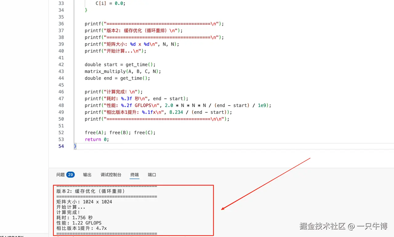 printf("相比版本2提升: %.1fx\n", 1.756 / (end - start));