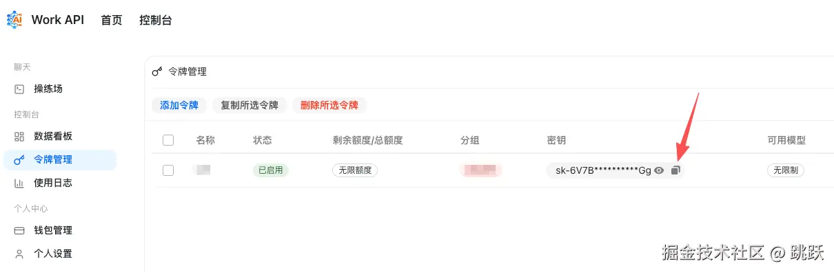 API Key:复制前面生成的密钥