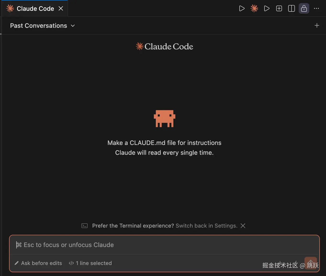 随便打开一个文件然后点击右上角的插件的图标,就会进入Claude Code插件版本的页面了。