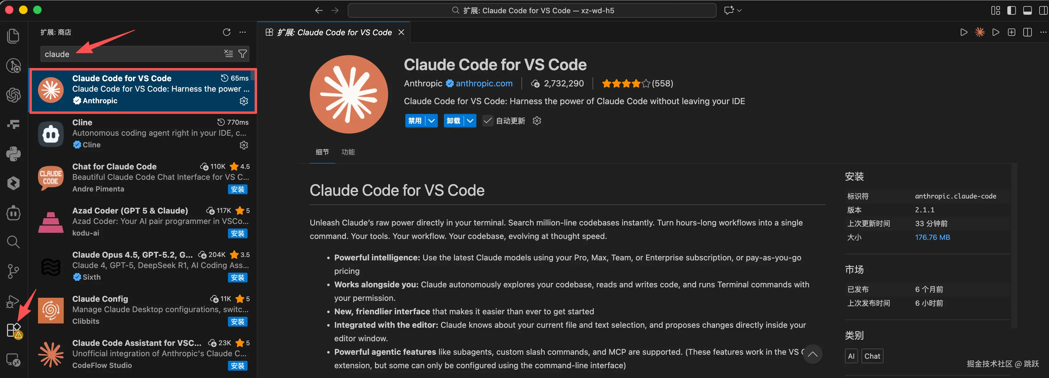 1、安装vscode中的Claude Code插件或者Claude Code终端命令行工具,这两个只需要选择一个安装就行了