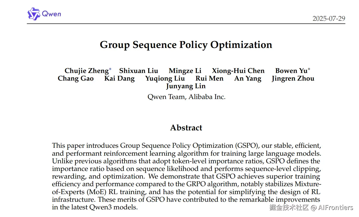 论文标题:Group Sequence Policy Optimization