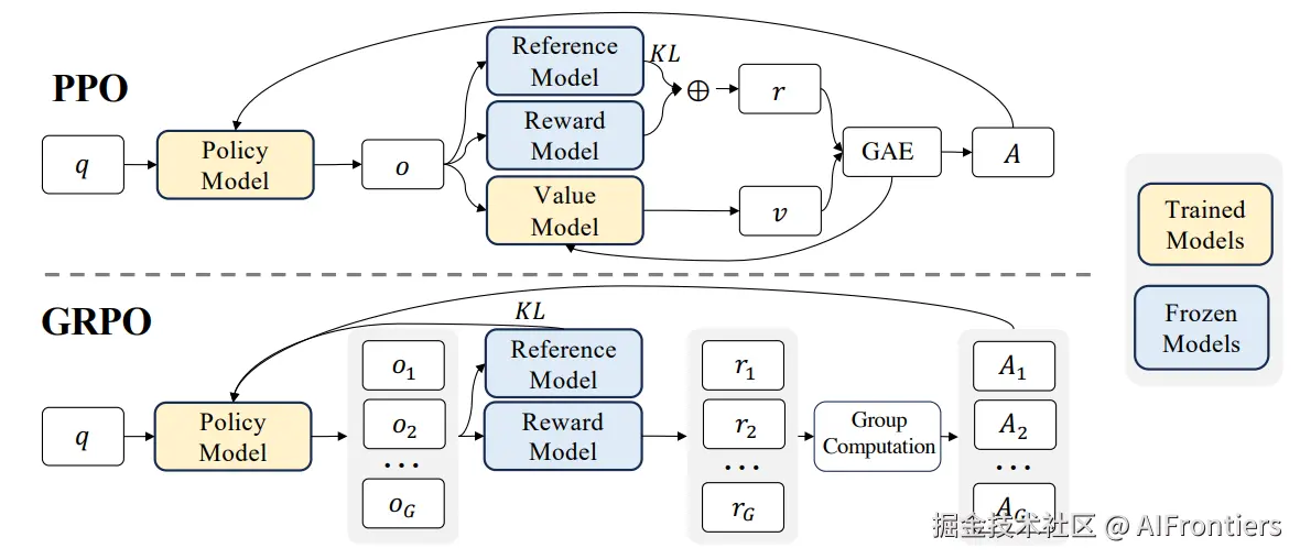 如前文所述,PPO算法虽被证实有效,但也暴露诸多痛点。如需同时维护和运行四个模型,对计算资源和显存的要求极高;训练过程还伴随强化学习(RL)常见的不稳定性问题;一次完整的PPO训练,覆盖多个环节,调优的难度较大。