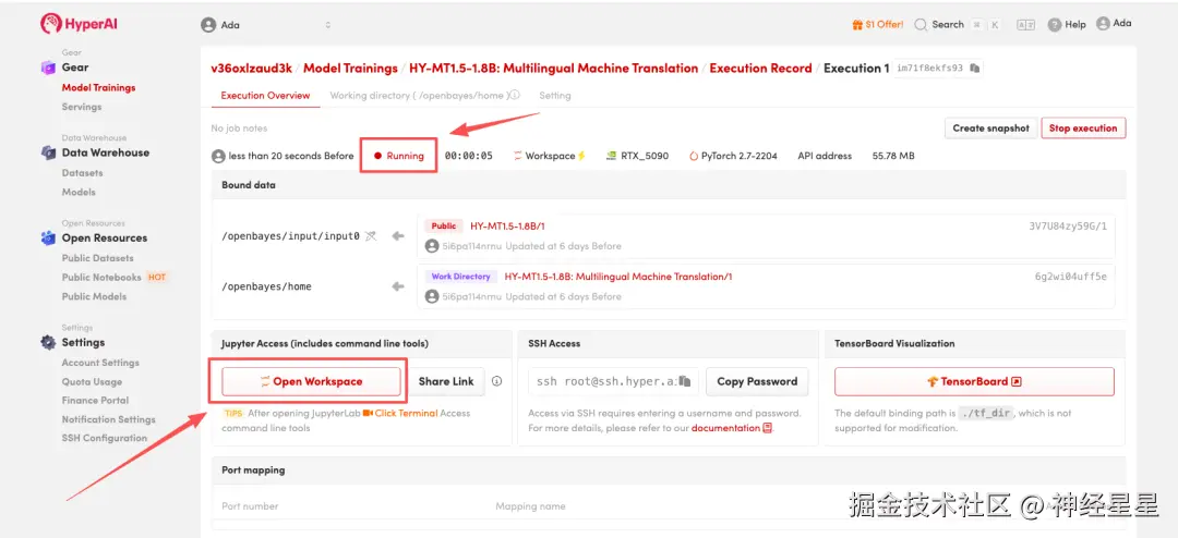 HyperAI超神经还为大家准备了算力福利,新用户注册后使用兑换码「HY-MT」即可获得 2 小时 NVIDIA GeForce RTX 5090 使用时长, 数量有限,快来领取吧!