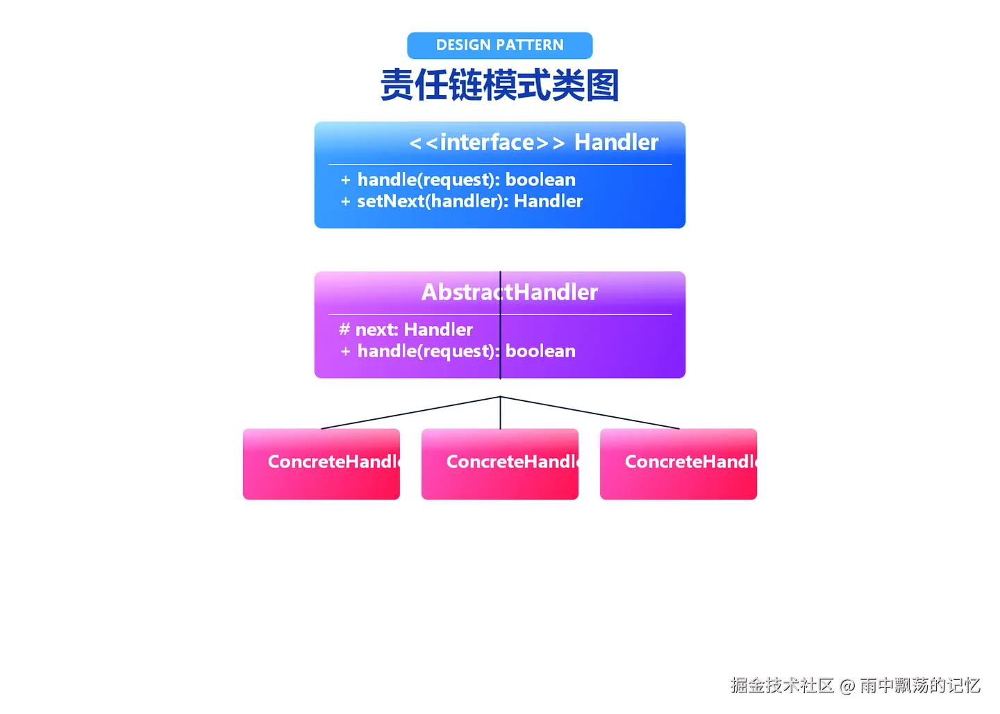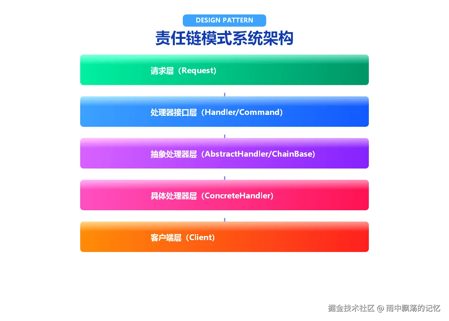 从上图可以看出,责任链模式包含以下几个核心层次: