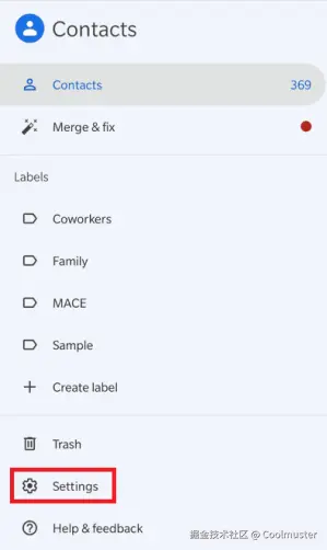 步骤 3. 选择“设置”,然后选择“导入/导出联系人”。